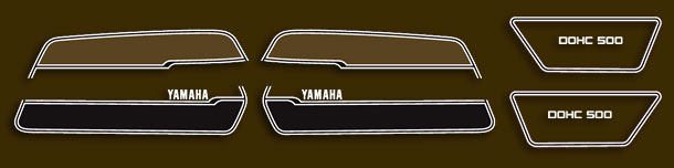 Complete fuel tank & side panel 4 piece 1975 XS650B decal set $99 US #YXS-76-500CS Set includes all decals shown below |